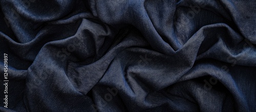 Close up of dark navy denim fabric displaying soft, flowing texture with deep blue shades emphasizing the elegance and style of contemporary textile design