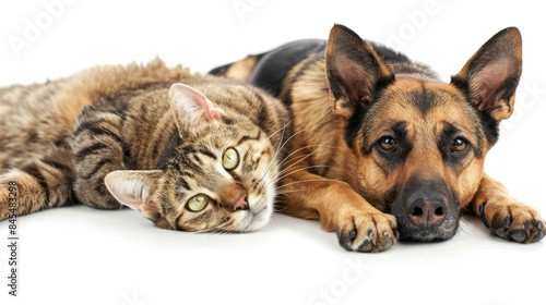 close up of dog and cat on white background