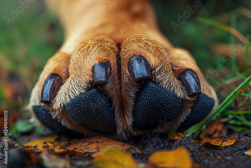 Close up of dog paw with dark colored claws