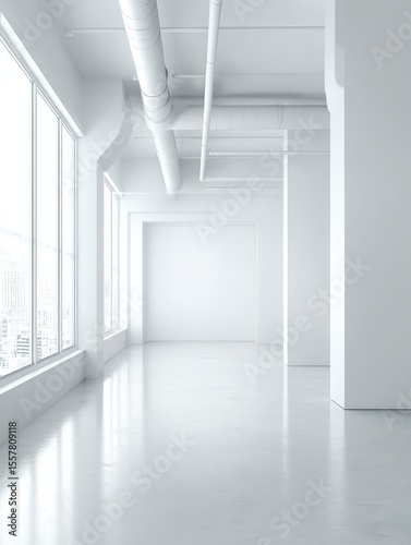 close up of empty white office space with blank walls provides a clean and minimalist backdrop