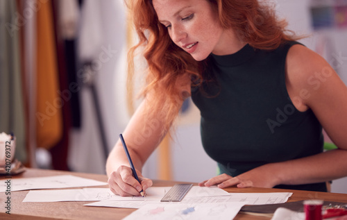 Close Up Of Female Student Or Business Owner Working In Fashion Sketching Designs In Studio