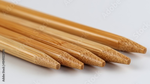Close Up of Five Bamboo Knitting Needles on White Background