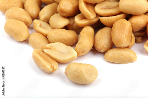 Close up of fried, peeled and salted peanuts.
