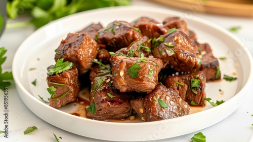 Close Up of Glazed Beef Bites With Fresh Parsley