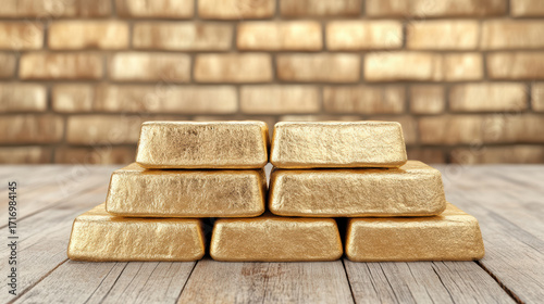 Close up of gold bars stacked neatly against textured background, showcasing luxury and wealth