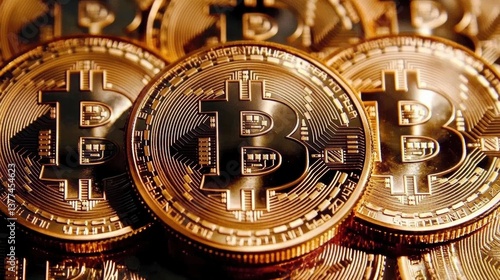 Close Up of Golden Bitcoin Cryptocurrency Coins