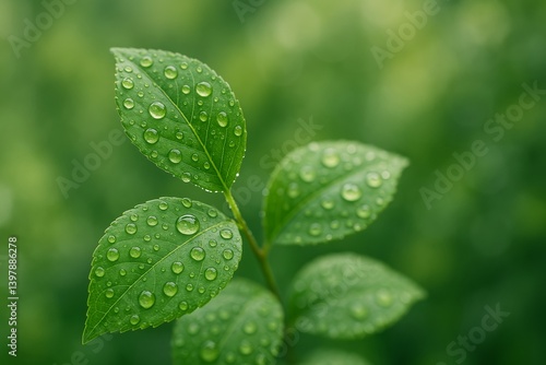 Close up of Green Leaves With Water Droplets in a Lush Environment During a Serene Moment