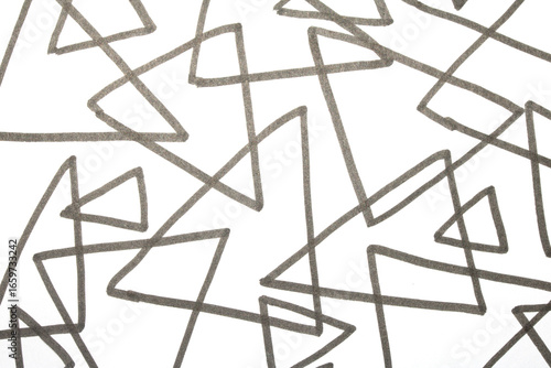 Close up of hand drawn doodle pen triangle square black lines and waves on white background