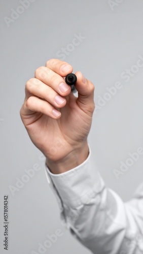 Close Up of Hand with Black Marker Writing on Invisible Surface Isolated