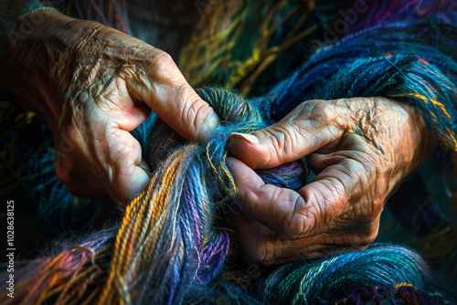 Close up of hands embroidering colorful floral patterns generative AI image