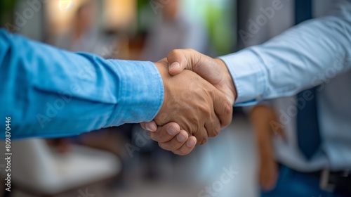 Close up of hands shaking on business deal, man handing over to other person isolated against . Businessman giving cash forcape and handshake in office .