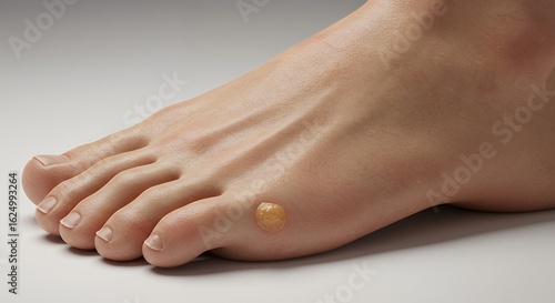 Close Up of Human Foot with Blister on Big Toe in Natural Lighting