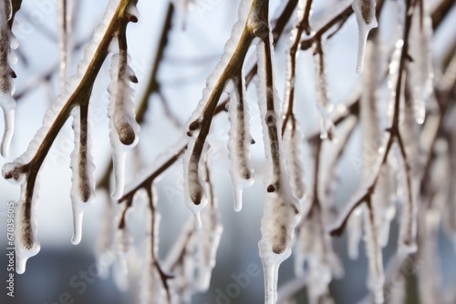 close up of icicles hanging from a vine