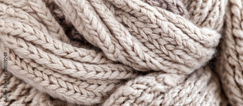 Close up of light brown knitted wool texture ideal for autumn fashion and cozy seasonal projects