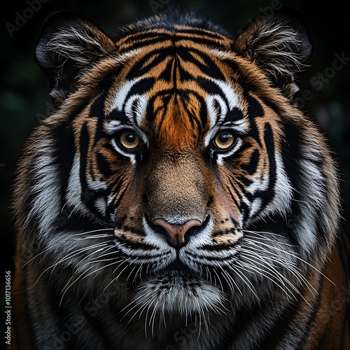 Close Up of Majestic Tiger Face with Intense Gaze in Beautiful Wildlife Photo
