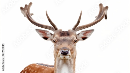 Close up of male sika deer isolated on white background. Sika deer antler with clipping path