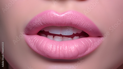 close up of mouth with pink lips and teeth visible