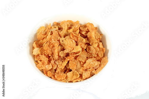 close up of muesli with dried fruits and yogurt in bowl on white background