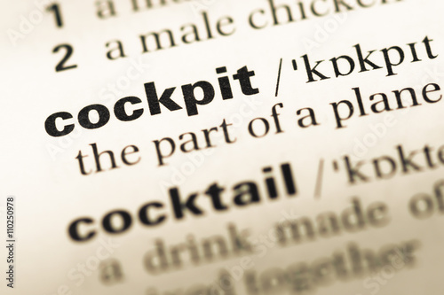 Close up of old English dictionary page with word cockpit