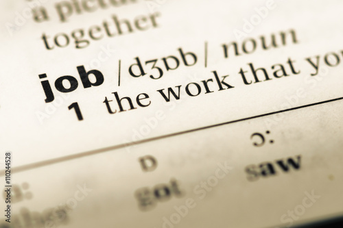 Close up of old English dictionary page with word job