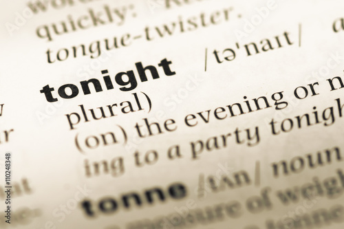 Close up of old English dictionary page with word tonight