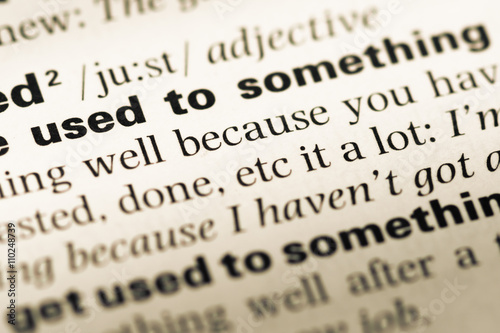 Close up of old English dictionary page with word used to