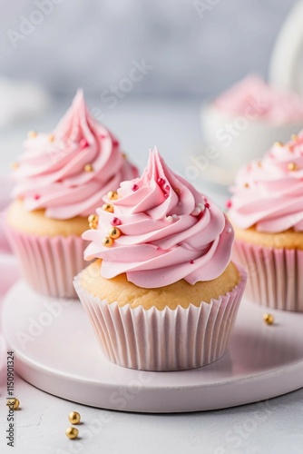 Close up of pastel frosted cupcakes