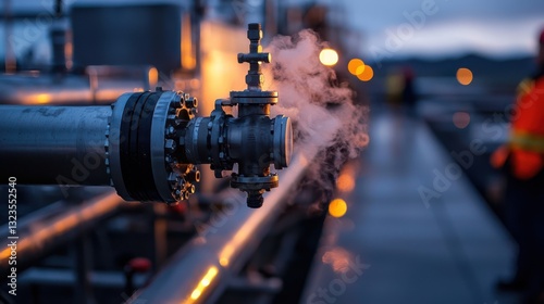 Close Up of Pipe Emitting Steam Creating an Industrial Atmosphere