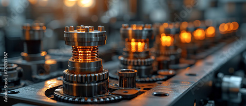 Close up of pistons in cylinder with four valves in a modern engine with gears nearby, generative ai.
