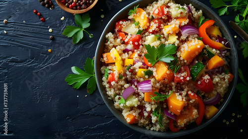 close up of Quinoa Salad with Roasted Vegetables in bowl, Food Photography