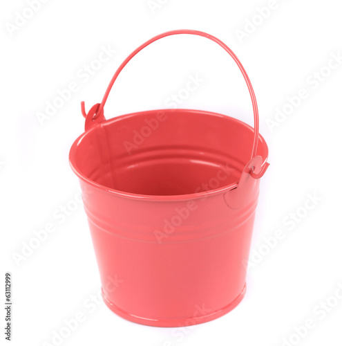 Close up of red metal bucket.