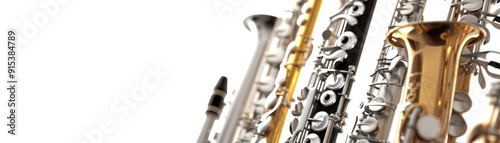 Close up of saxophones.