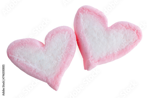 close up of sweet heart shape of marshmallow isolated on white background.clipping path