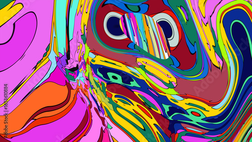 Close up of swirling vibrant colors creating an abstract fluid, and psychedelic pattern design effect