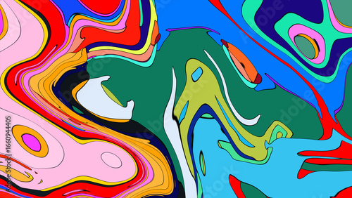 Close up of swirling vibrant colors creating an abstract fluid, and psychedelic pattern design effect