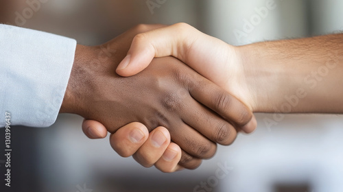 close up of two hands shaking, symbolizing agreement and partnership. hands represent diversity and collaboration in professional setting