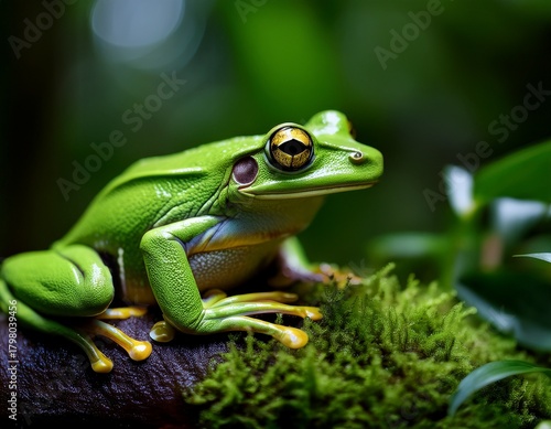 close up of vibrant green frog in lush rainforest habitat nature rainforest