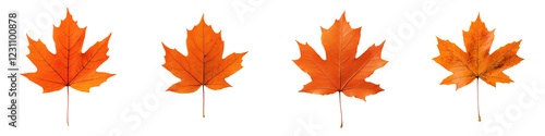 Close up of vibrant vivid orange and red autumn maple leaves arranged in a natural scenic display Striking fall foliage colors in a seasonal natural environment backdrop