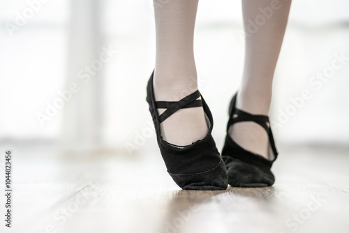Close up of woman ballet's feet spinning and jumping in tutu and pointe shoes.