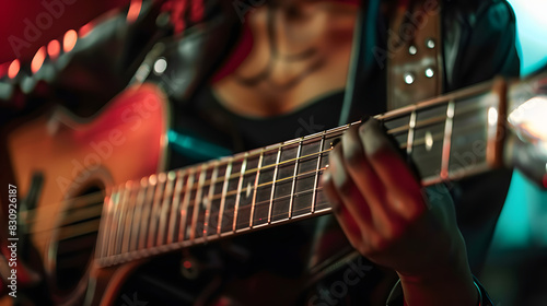 Close up of woman playing guitar