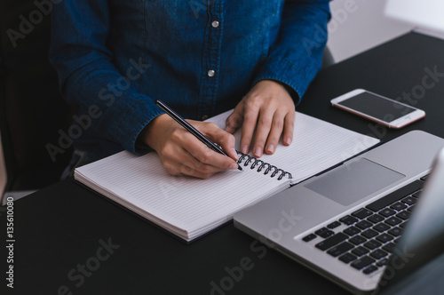 Close up of woman writing her journal