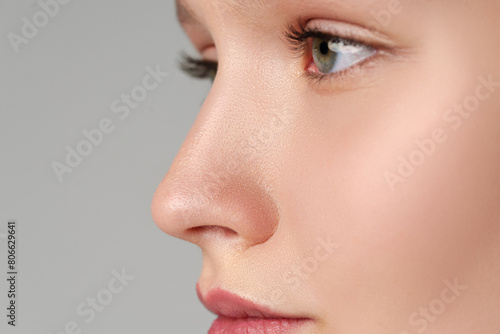 Close up of young female blue eyes