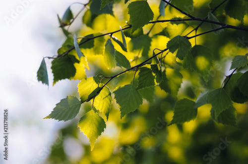 Close up on a green brich tree leaves