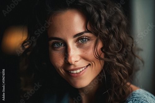 Close up photo of charming attractive lady looking into the camera. Generative AI