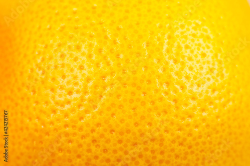 Close up photo of Grapefruit peel texture. Exotic ripe fruit background, macro view. .Human skin problem concept, acne and cellulite.