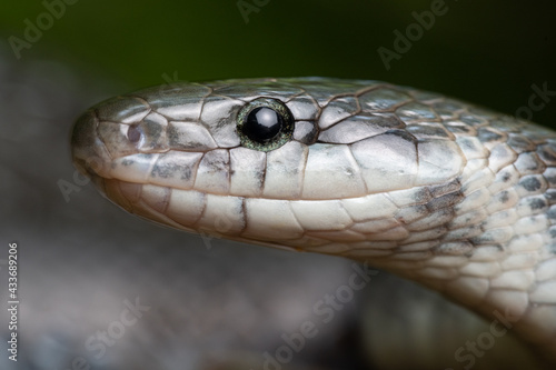 Close up Portrait Aesculapian snake Zamenis longissimus with parcial melanism in nature