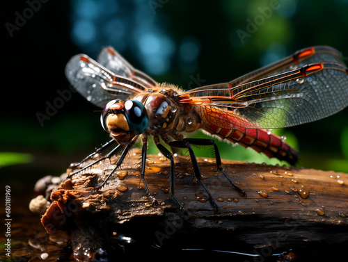 Close up portrait of a dragonfly in its natural environment, posing for the camera.