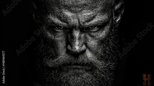 Close up portrait of an angry man with long facial hair