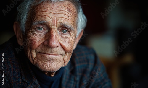 Close Up Portrait Of An Elderly Person With Wrinkled Skin And Gray Hair