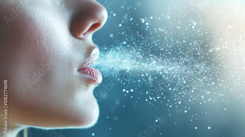 close up portrait of coughing person, phlegm from cough, spread of diseases through cough